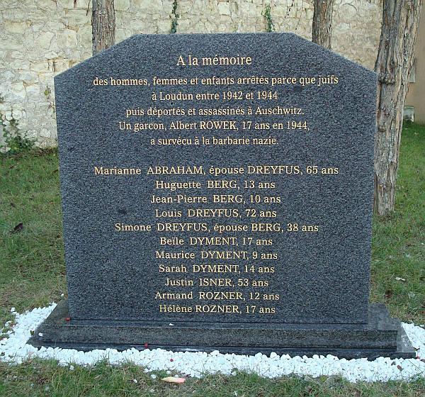 Stèle érigée en mémoire des juifs déportés partis de Loudun.